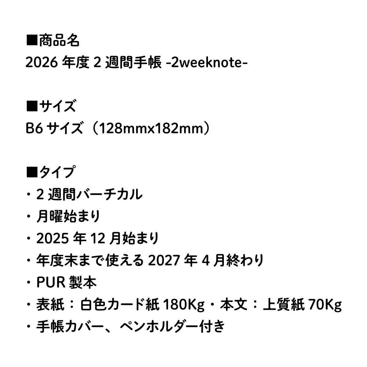 ※誤植手帳お試し価格品※【2026年版】<B6・2週間手帳-2Week note->4月始まりでも使える月曜始まり スケジュール帳(透明カバーなし)|見通しを立てやすい2週間見開きノート 毎日手帳を書かない苦手な人のための手帳ダイアリー2weeknote b6|初心者・デジタル派向けメモ代わりに使える手帳 ウィークリー 週間バーチカル